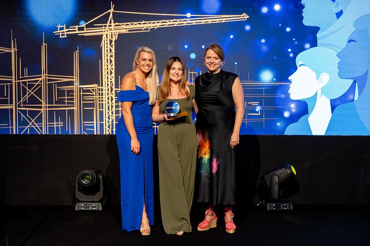 Former World Cup alpine ski racer, Chemmy Alcott is pictured with Abigail Brierley and Deputy Editor of the New Civil Engineer, Belinda Smart