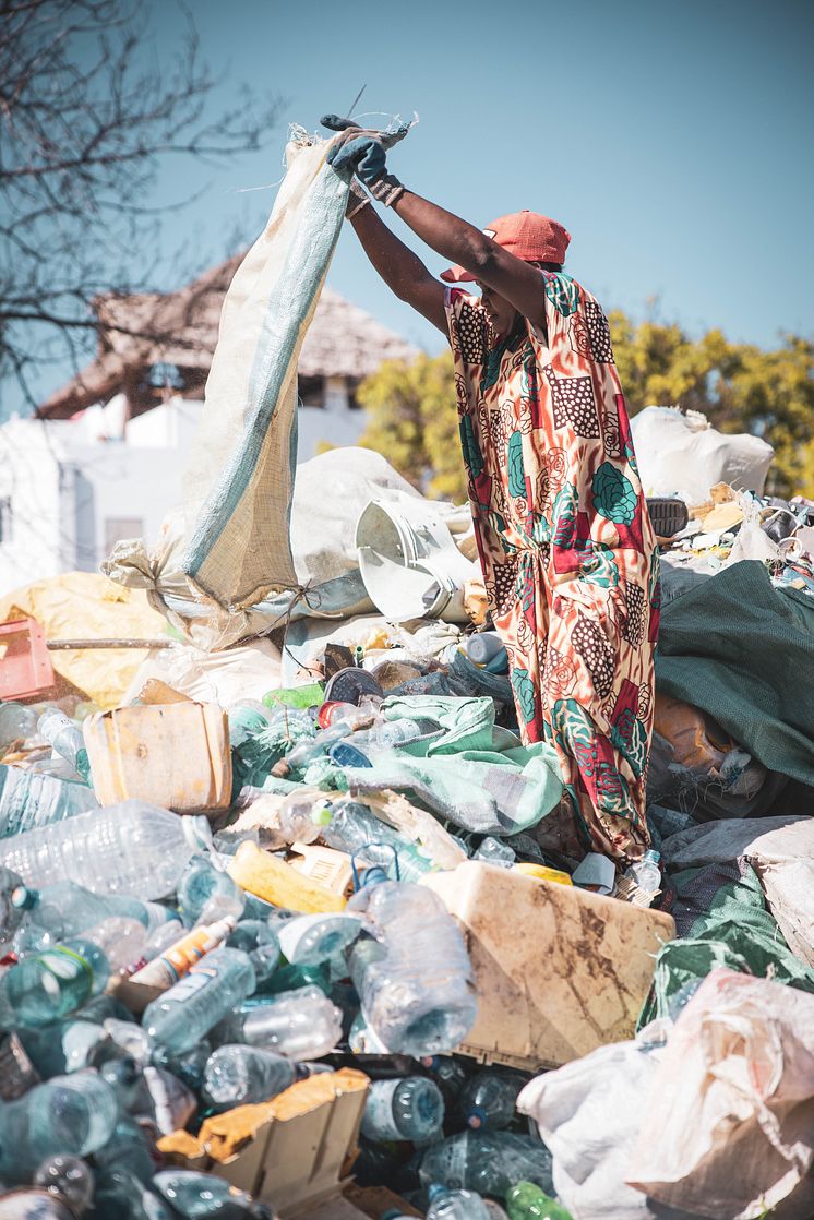 Plastic waste sorting at Lamu material recovery centre, Kenya. Image by Umber Studios