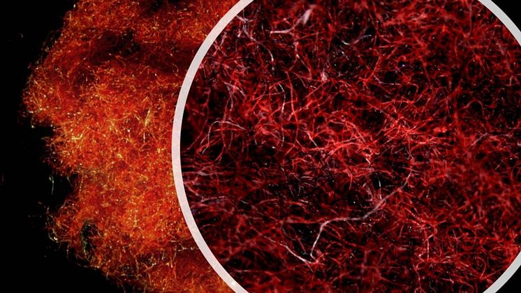 striking image from microscope of cotton and polyester fibres collected from tumble dryer exhaust