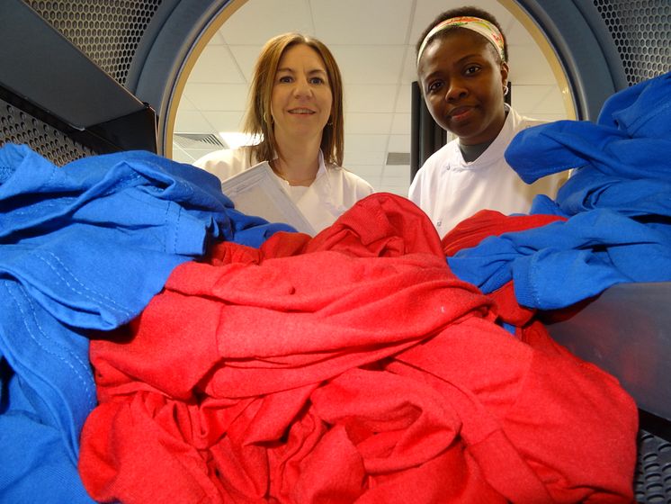 Test load in a tumble dryer - Kelly Sheridan and PhD student Chimdia Kechi Okafor.JPG