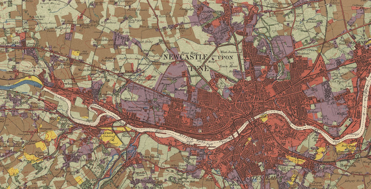 The land use of Newcastle-upon-Tyne and Gateshead as surveyed by the Land Use Survey of Britain between 1931 and 1935 (Copyright Giles Clark, CC-BY-NC-SA)