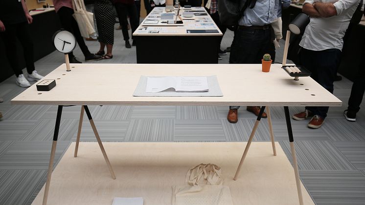 The exhibition, which took place in July 2016, offered students the opportunity to showcase their skills and creativity, meet industry experts and connect with fellow students in an environment aimed at celebrating upcoming creative talent. Leading industry figures and visitors attending the exhibition had the chance to appreciate the innovative and creative thought process behind graduate projects such as ‘Plank’. Northumbria’s Design for Industry student Adam Galley designed this unique piece of furniture that accompanies its owner for life. It is a clever sheet of ply, pegboard on one side and a smooth surface on the other which, thanks to a collection of intelligent components, allow the user to create their own configuration in response to their own needs.