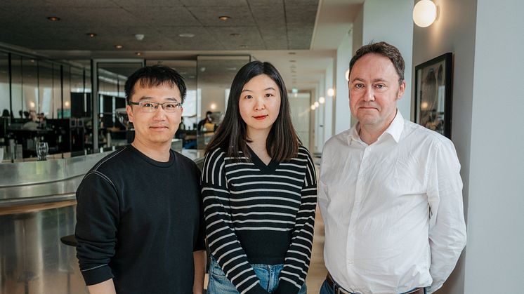 Image 1 – The project team, Research Assistant Mingyu Zhu, Dr Jiayi Jin and Professor Richard Laing are pictured while attending the Future Observatory workshop and presenting their research at the Design Museum, London.