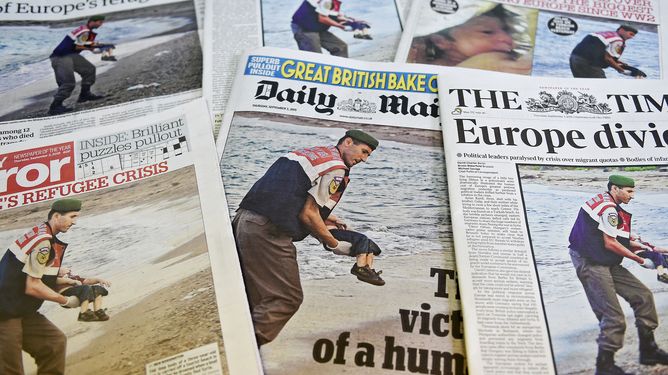 The harrowing picture of a man carrying the corpse of a drowned boy on Bodrum beach published by numerous news organisations could be the defining image of a globally significant event.