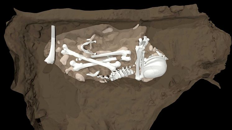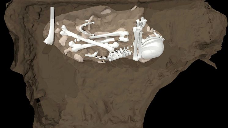 According to Dr Randolph-Quinney we have a few lines of evidence that Homo naledi buried their dead. Firstly, there is evidence of a grave cut, which is a hole that Homo naledi deliberately made in the cave floor to contain the dead bodies. Secondly, the pattern of bones within the graves is consistent with a body that is flexed or curled-up. Dr Randolph-Quinney could determine the body was flexed using x-ray imaging, which allowed him to see inside the sediment of the grave. He states that the relationship between the bones is what a forensic scientist would expect to see if a body decomposed in a flexed position.