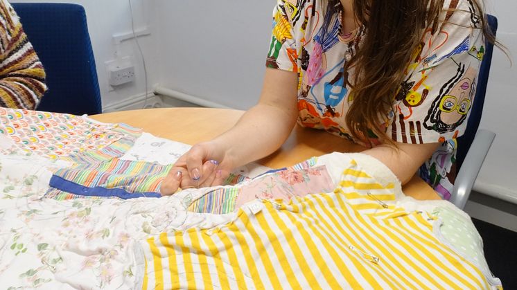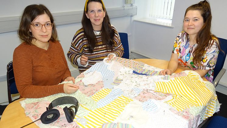 • Dr Angelika Strohmayer working on the quilt with colleagues from Swansea and Aberystwth Universities